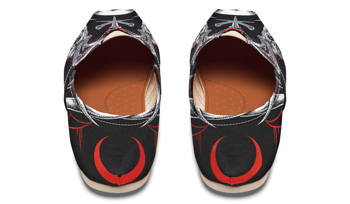 Design by @thesacredeyes • Free size replacement! • True to Size • Top quality 100% Vegan materials • Canvas fabric with EVA outsole • Elastic V for easy on-and-off use • Amazing colors & print quality • Custom made Just For YOU!