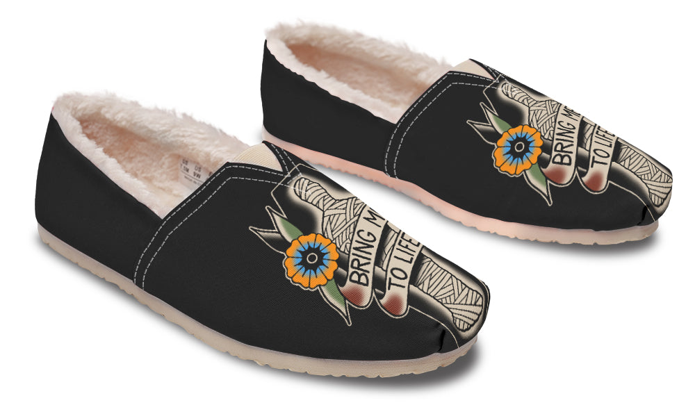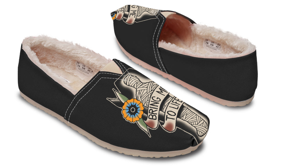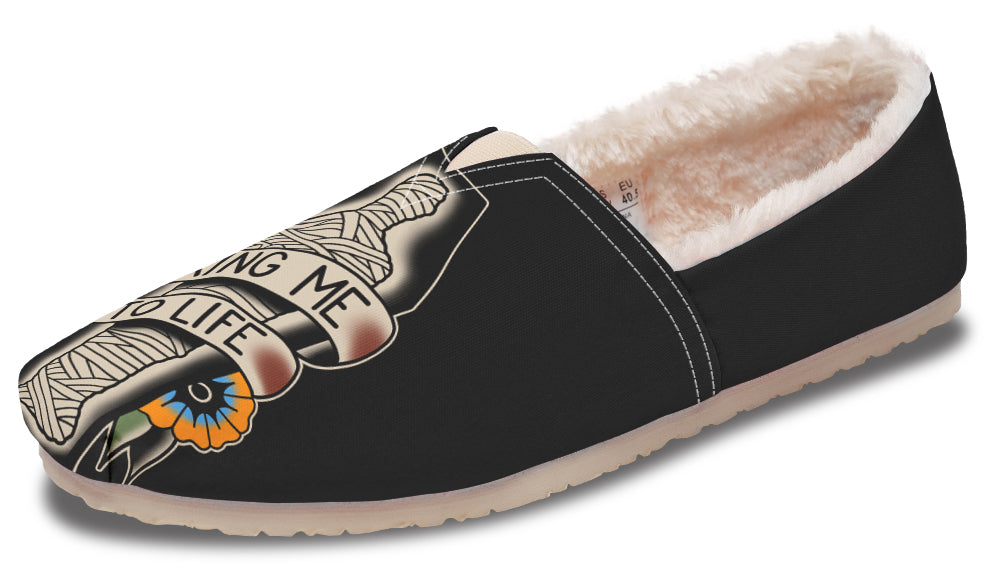 Free size replacement! • Soft furlined removable insole • Easy to slip on • 100% Vegan materials • Canvas fabric with EVA outsole • Elastic V for easy on-and-off use • Amazing colors & print quality • Custom made Just For YOU!